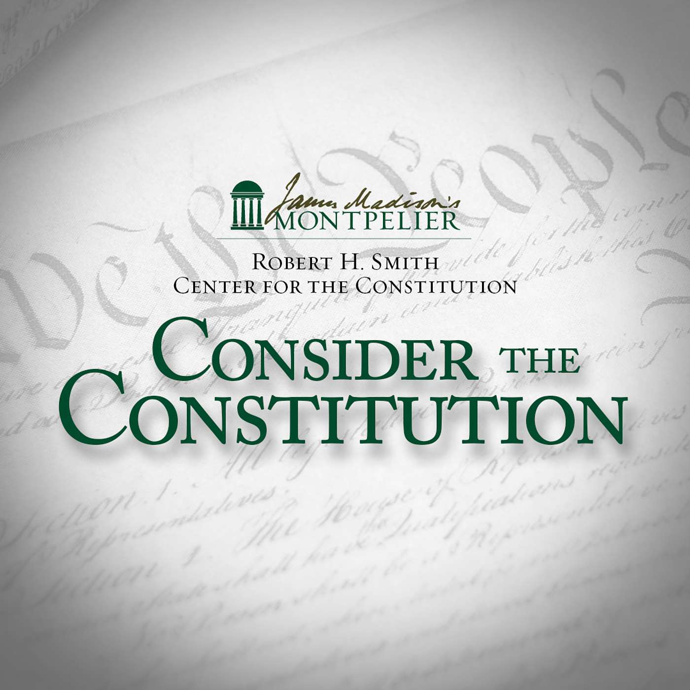 Consider the Constitution is a podcast from the Robert H. Smith Center for the Constitution at James Madison's Montpelier. The show provides insight into constitutional issues that directly affect every American. Hosted by Dr. Katie Crawford-Lackey the podcast features interviews with constitutional scholars, policy and subject matter experts, heritage professionals, and legal practitioners.